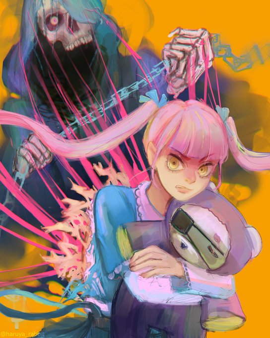 A Grim Reaper who lives inside a girl that loooves pink #イラスト #art #ArtistOnTwitter #illustration