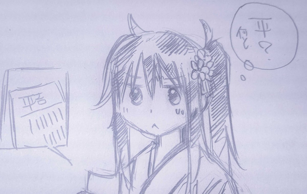 お昼に聴いていたラジオで今年のおみくじ何引いたよ?な話題が出ていた。 私は引いたことないが「平(平吉)」というものもあるらしい。 #落書き