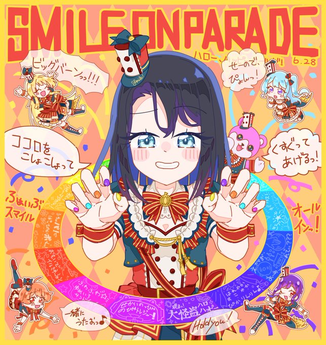 SMILE ON PARADE リリースおめでとう!!!!!!!!! 一週間以上遅れちゃったけど思い出つめっつめに詰めた!!!!あれからずっと聴いてる…笑顔をありがとう!!!!!! ハッピー!ラッキー!スマイル!イェーイ!!!! #bandoriart