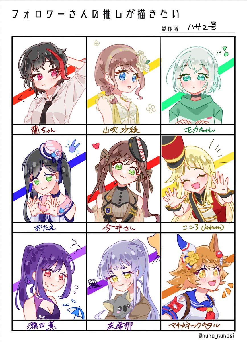 たくさんの応募ありがとうございました〜〜〜!!!!ルーレットで決めた結果がこちらです〜〜〜アカウントに飛んで好きそうな衣装で描きました〜〜 今回描けなかった方々も本当にありがとうございました😊 twitter.com/hasa2gou/statu…