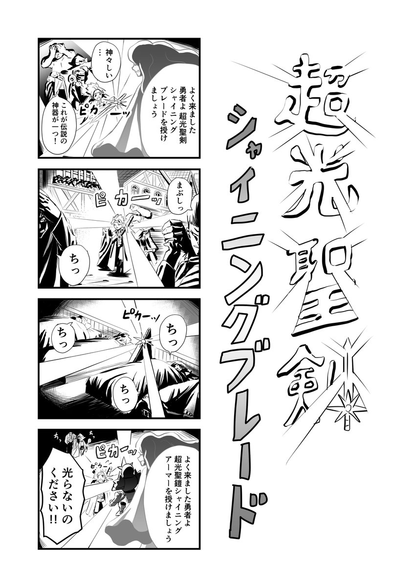 日刊ゆぉんコマ漫画 2日目[超光聖剣シャイニングブレード] #漫画が読めるハッシュタグ #4コマ漫画