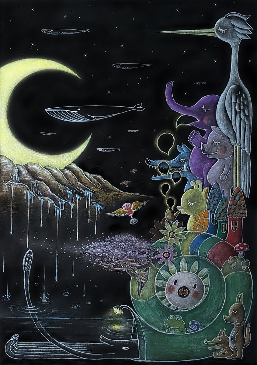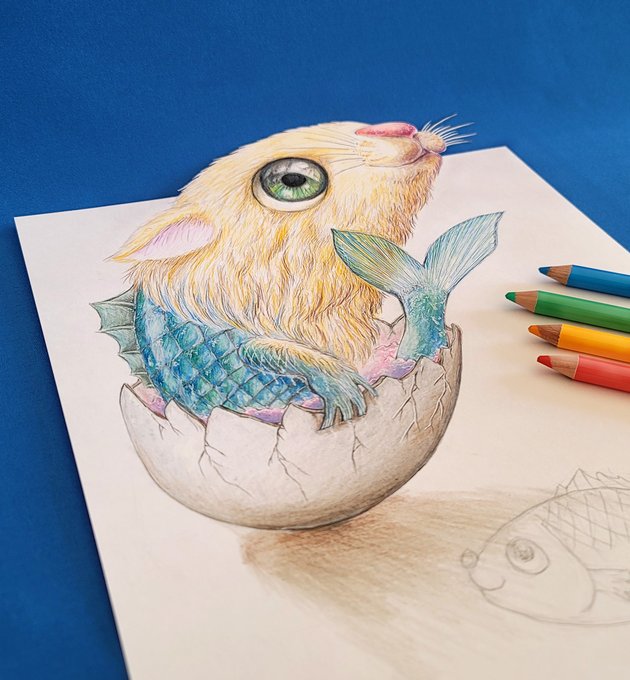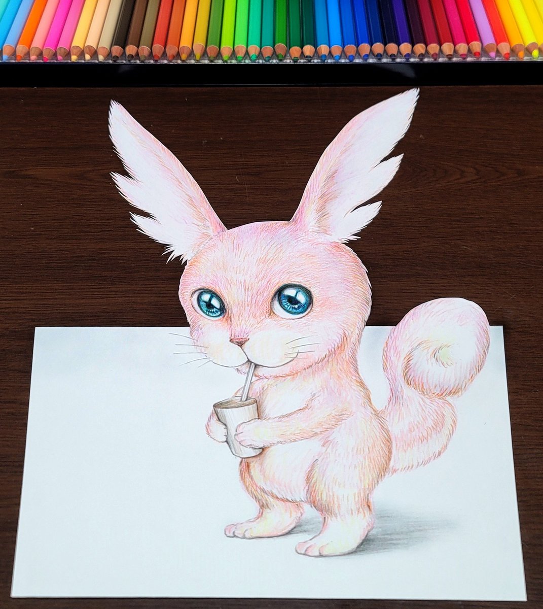 🎨お絵描きが楽しくなったので、色鉛筆で かわいい生き物を描きました😊🎵 #色鉛筆画