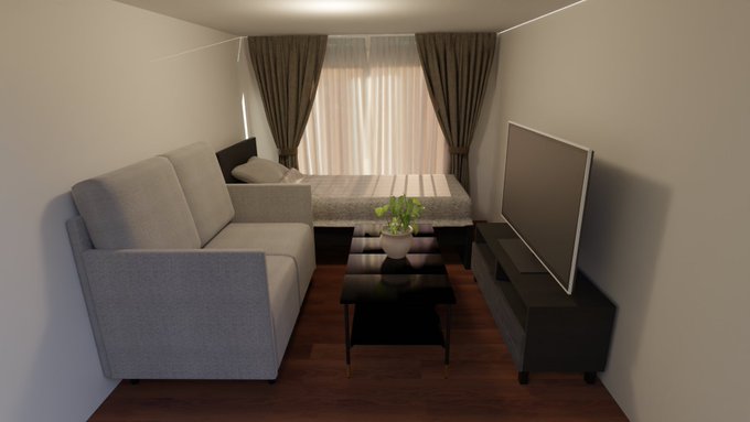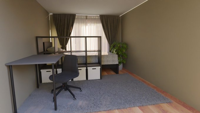チャレンジ18日目 cyclesでレンダリングすると綺麗だなぁ😳 でも2時間くらいかかった笑 壁や机など気になる所は色々あるから試行錯誤してく💪 #100日チャレンジ #3DCG #blender #blender初心者 #6畳部屋 #インテリアシミュレーション