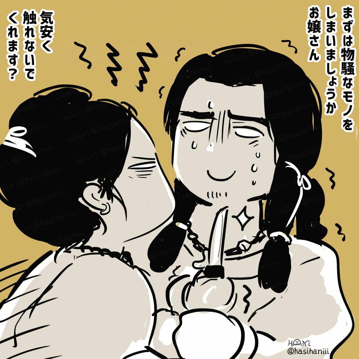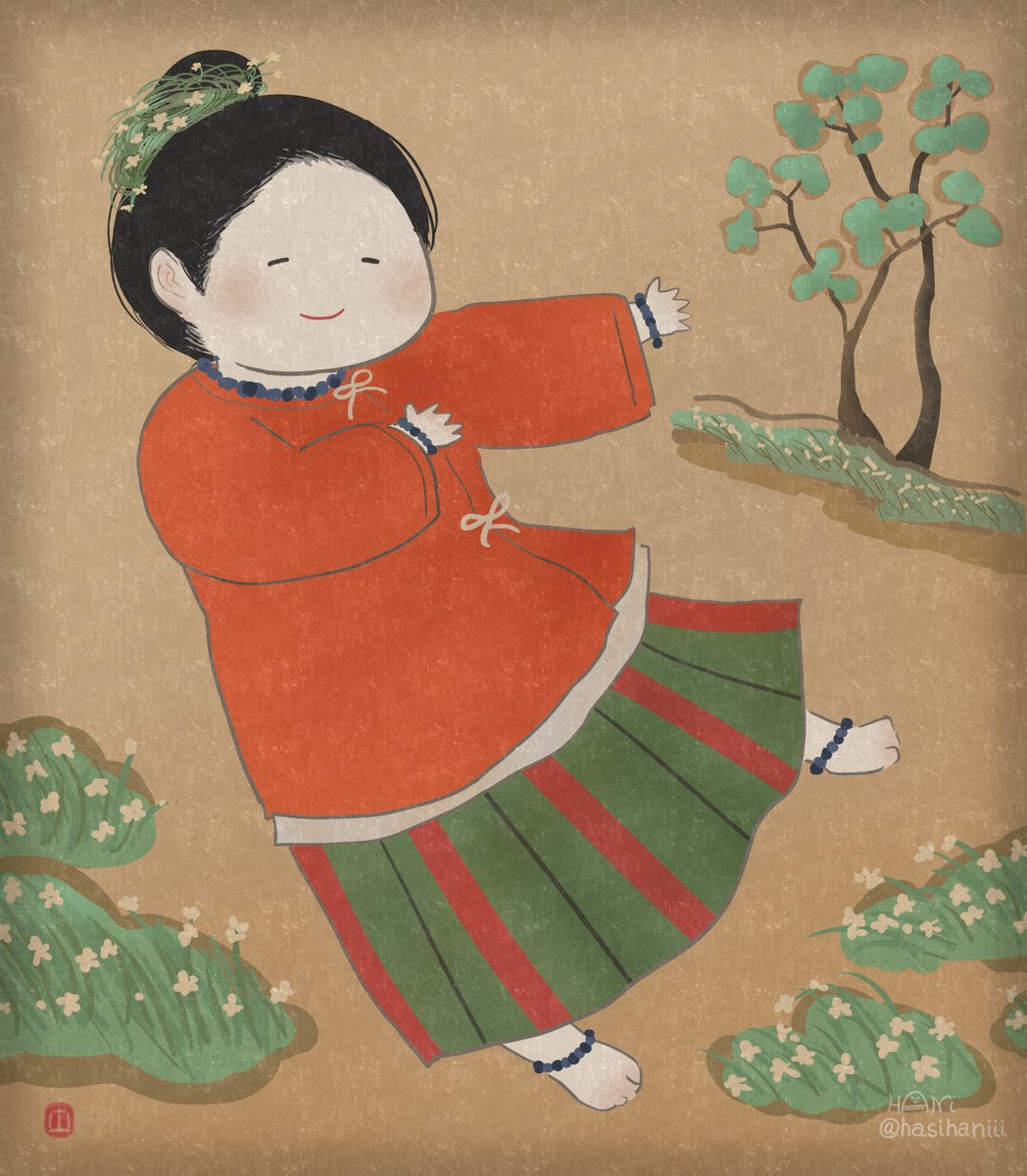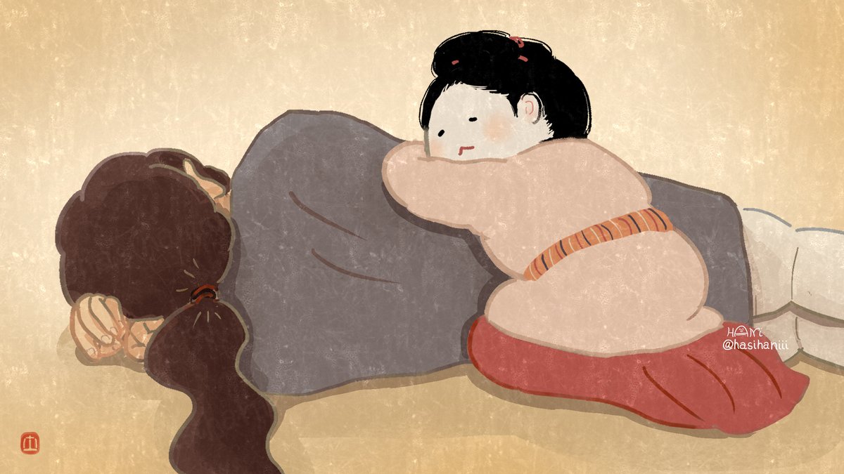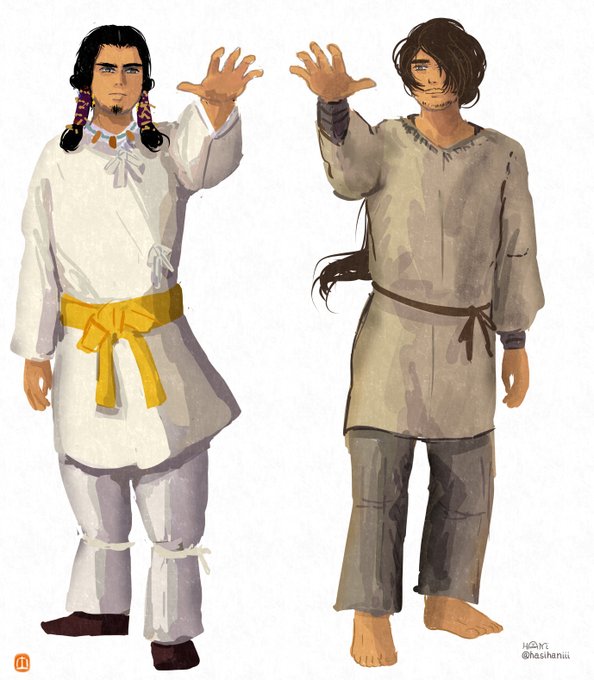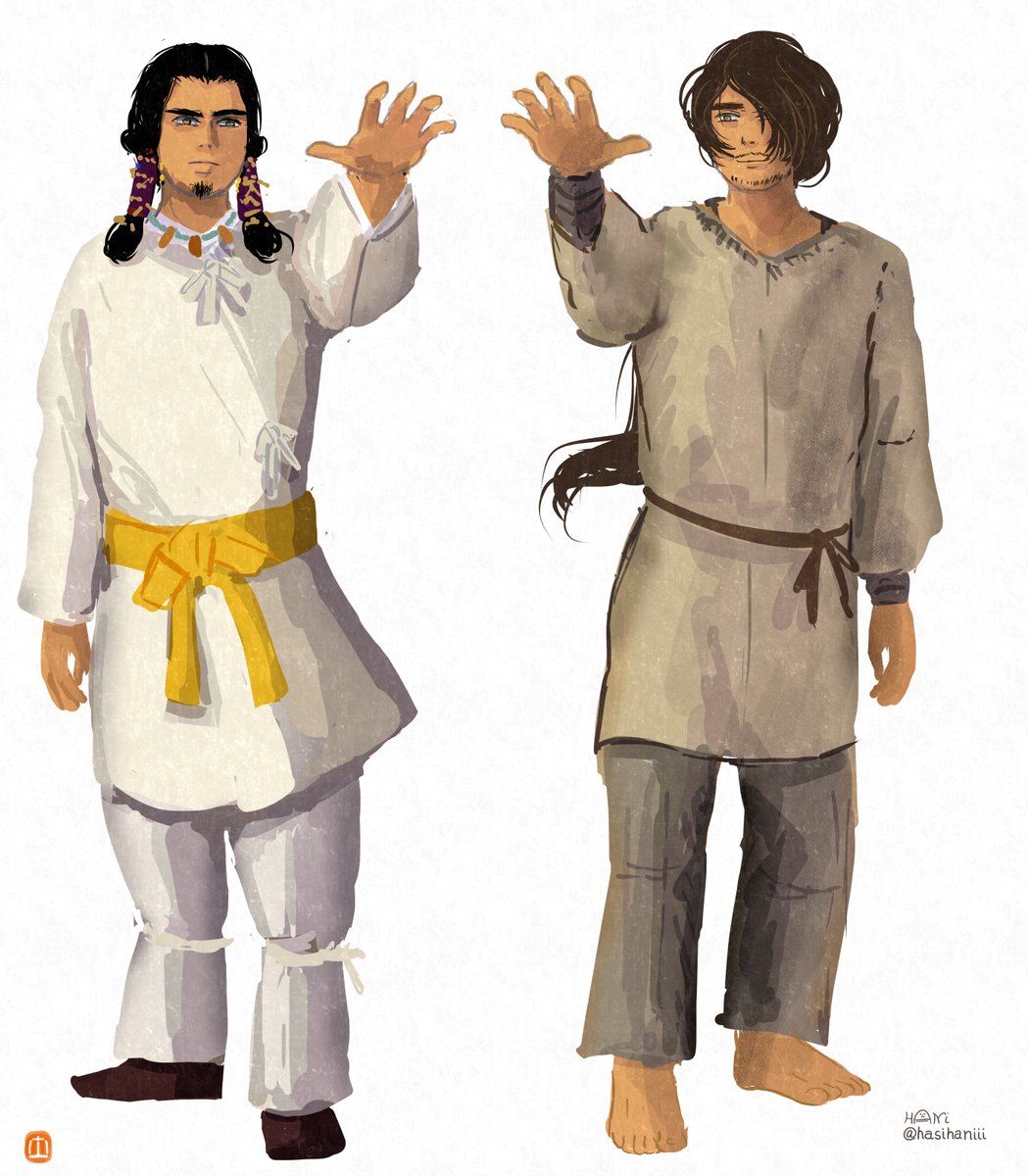 なかなか自創作の漫画進まないのでイメージ画描きました 美貌の兄媛(えひめ)に妻問い(求婚)しに来たやんごとなき身分の大首長・風日(かざひ)さま。二人は同い年。前ツイ画甘い雰囲気に見えますが全くおだやかな状況ではありません。妹の弟媛(おとひめ)の初々しい恋とはまた違った恋を描く予定 twitter.com/hasihaniii/sta…
