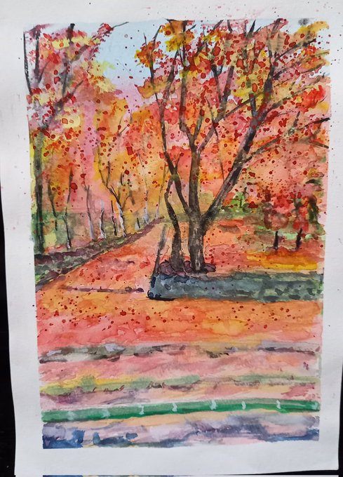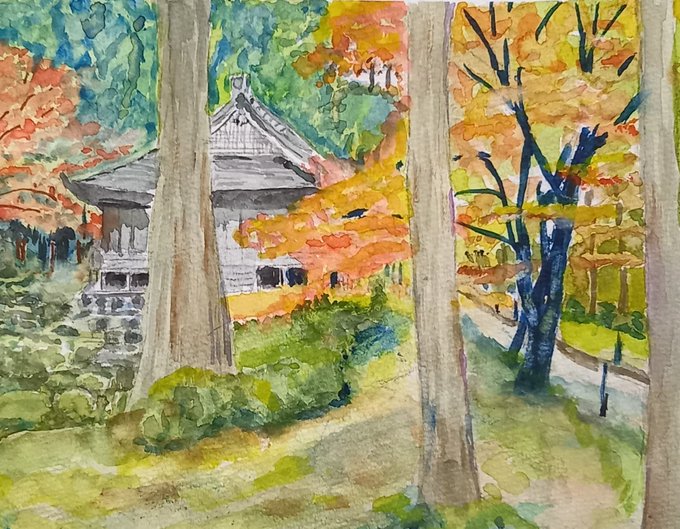 #水彩画練習中 朝 夕寒くなって紅葉🍁も 色ずいて来ました
