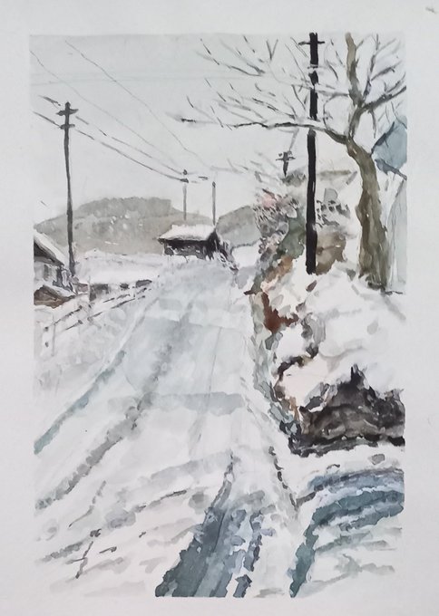 0 22 #水彩画 雪景色 22/02/28 12:38