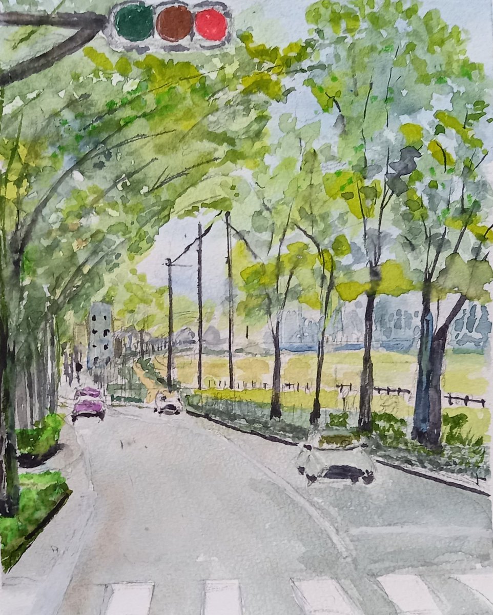 #水彩画練習中 新緑の季節です