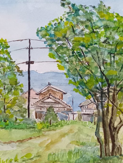 1 17 #水彩画練習中 新緑の季節です 23/04/16 21:20