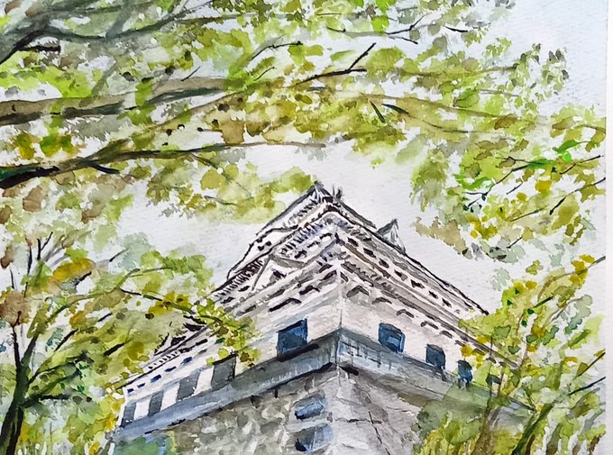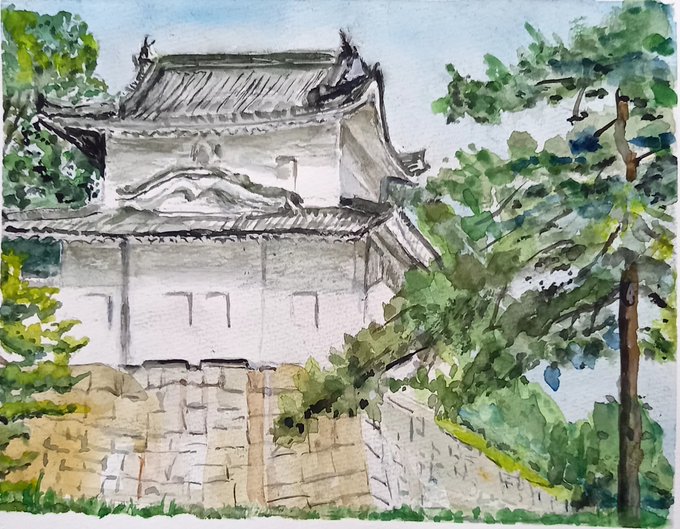 1 66 #水彩画練習中 京都 城の風景 22/07/31 15:16