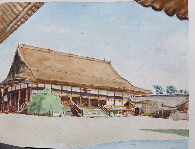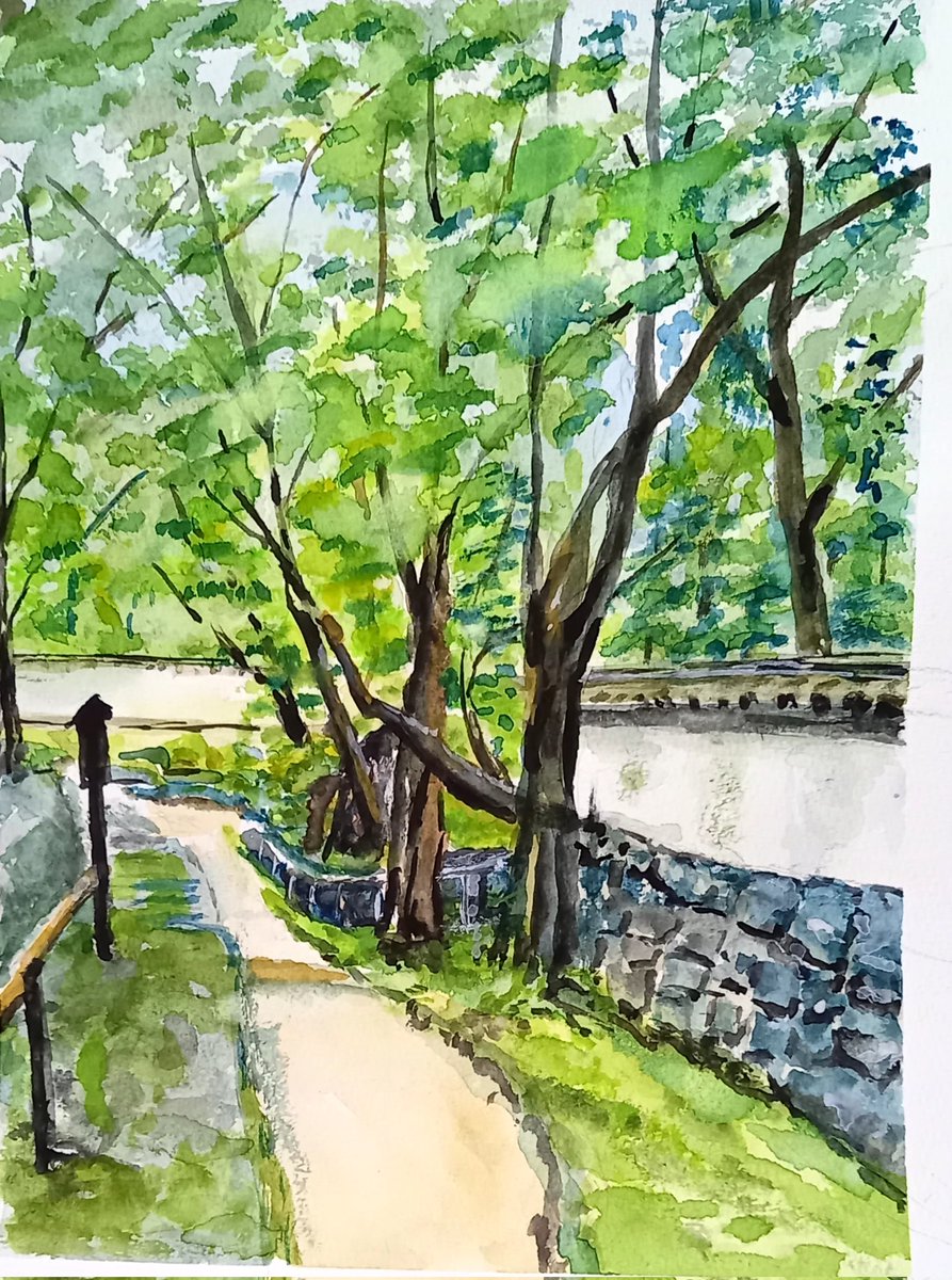 #水彩画練習中 京都御所描いてみました 観光客が 多くなって来ました けど 人は、除きました