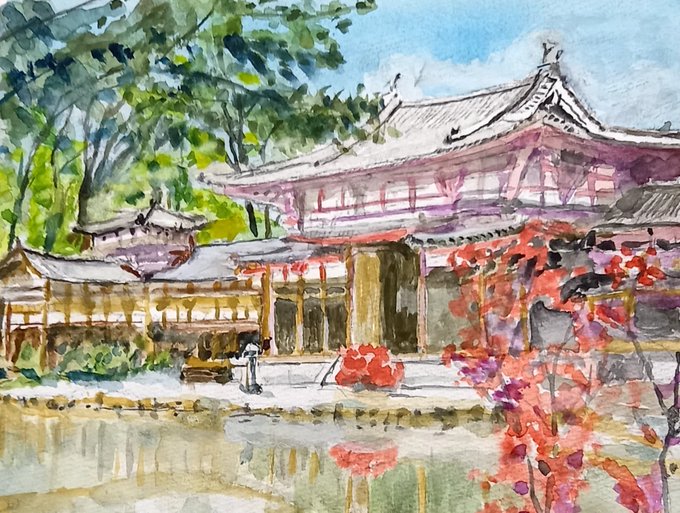 7 166 #水彩画練習中 京都御所描いてみました 観光客が 多くなって来ました けど 人は、除きました 22/10/29 17:22
