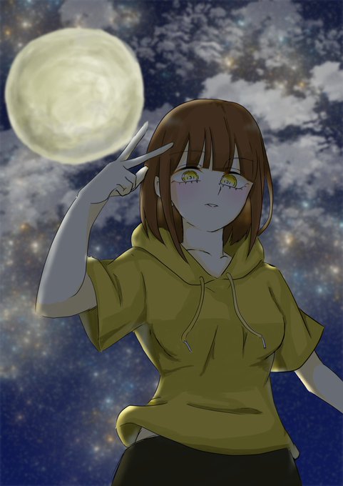 2 17 月を影にポーズ #イラスト好きな人と繋がりたい #イラスト #デジタルイラスト #オリジナルイラスト 22/08/30 20:17