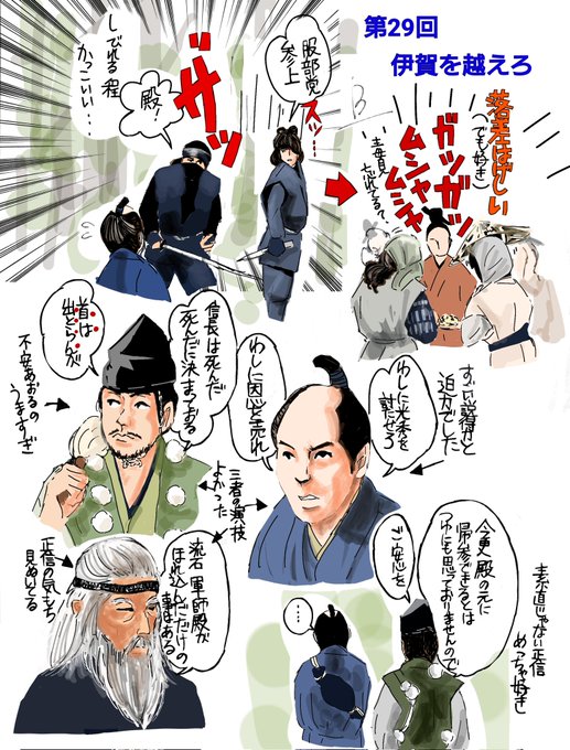 ・登場の仕方が しびれる程かっこよかったのに 我を忘れてがっつくあたりも落差激しすぎて好き ・正信は相変わらず策士だし 殿はもの凄い説得力だし 百地は正信の心を見抜いてるし 3人のこの流れがほんと良かった ・素直に戻りたいって言えない 相変わらずな正信が好き #どうする家康 #どうする絵