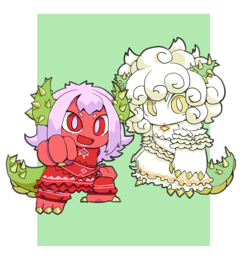 20 38 #人外版深夜の真剣お絵描き60分一本勝負 「アナタが考える色が対照的な人外兄弟/姉妹」 前に書いた日出没姉妹 22/03/12 10:24