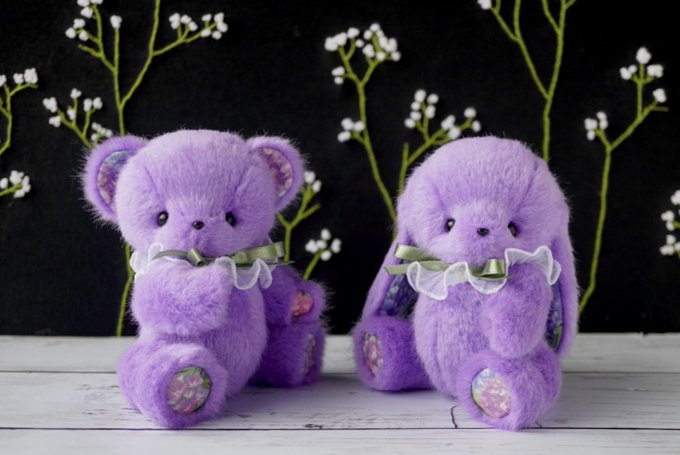 紫陽花カラーのテディベア&ロップイヤー☔️