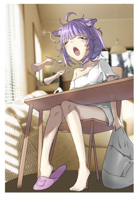 寝ぼけながら朝ごはん食べる #絵かゆ