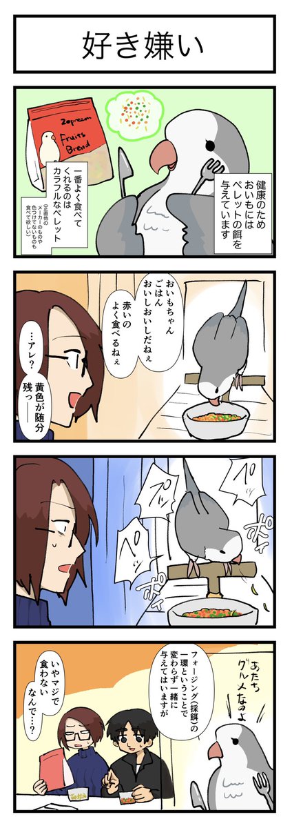こんなところかな。「オキナインコ」で調べるとマジでいつまでもオカメインコをサジェストされ続ける。 #はたぽの絵日記_鳥 #コミックエッセイ #エッセイ漫画 #4コママンガ #漫画が読めるハッシュタグ #鳥 #鳥のいる生活 #オキナインコ