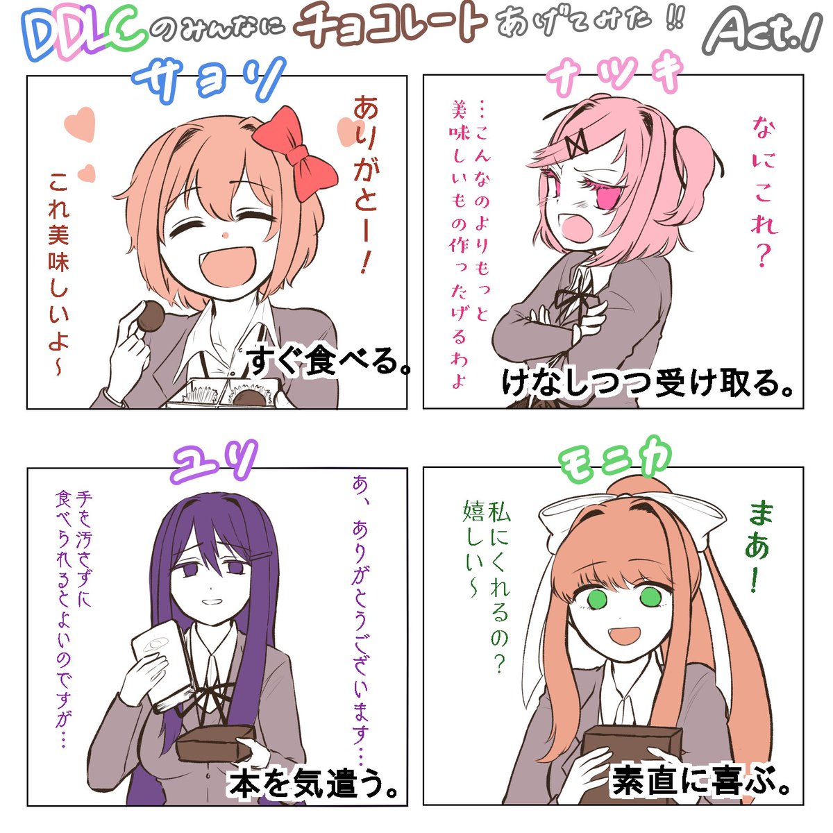 ドキドキ文芸部の動画完成しました! サムネイルには文字を乗せているので、差分を貼っておきます。 【手描きDDLC】惨事のハニー【ドキドキ文芸部!】 youtu.be/8zGmPfeknlg ※ゲームのネタバレが含まれます。 #DDLCfanart #DDLC #ドキドキ文芸部 #justmonika