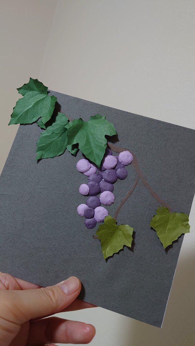 久々のペーパークラフト 新しい本を買って 手持ちの材料で作成 「ぶどう」って… 意外と難しいんだなぁ… 何かを思いつつ 手を動かし なんとか 完成 今度は バックを明るくしよう 色んなモヤモヤが晴れた #ペーパークラフト #紙工作 #やまもとえみこ先生 #切り紙でつくる食の歳時記