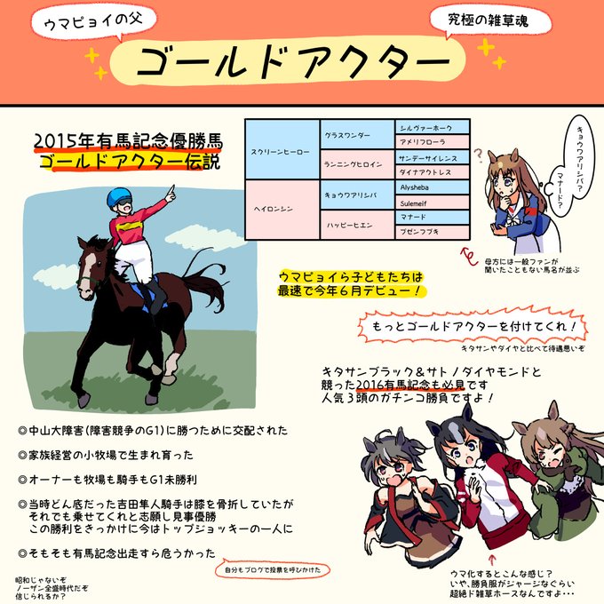 ゴールドアクターがバズったので詳しくご紹介 ロマンと個性の塊なので多くの方に知ってほしいです #ウマピョイ #ゴールドアクター #グラスワンダー