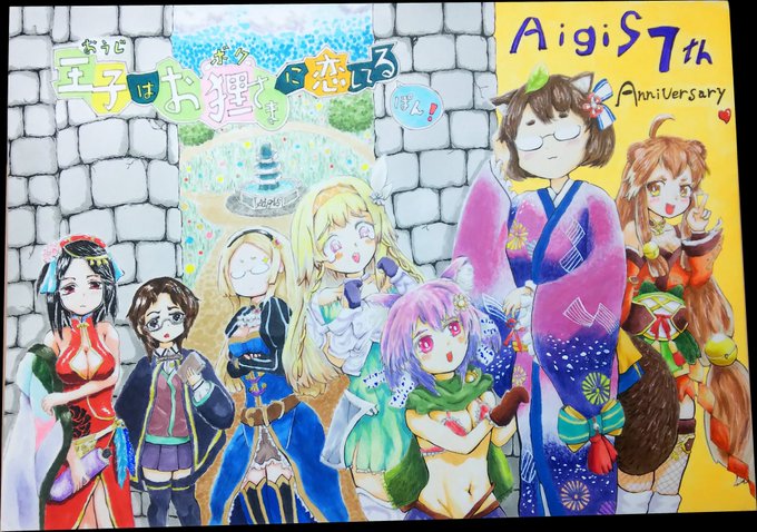 コピックと色鉛筆で書きました! 7周年おめでとうございます😊 あと993年がんばってください(^-^) あとヤシマちゃんください #アイギス7周年アートコン