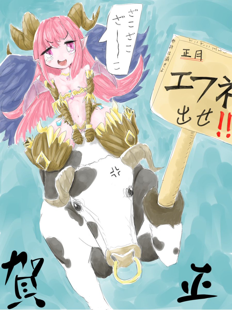 19 63 晴れ着のエフネちゃんが王国に来ないと知ったポンちゃんによる怒りの乗牛特攻 相手は死ぬ #千年戦争アイギス #アイギスお絵かき 21/01/01 22:41