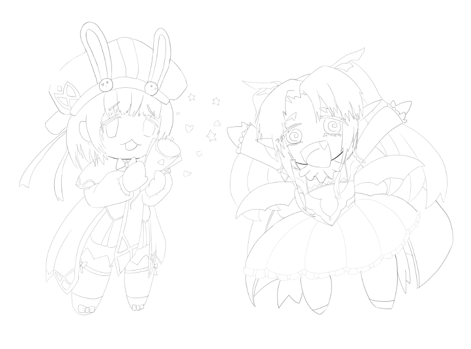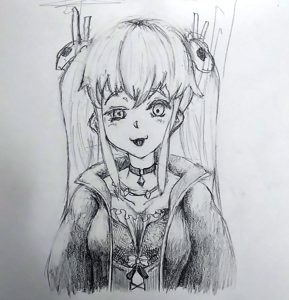 製作過程 ラフ→下書き→線画→着色 #アイギスお絵かき