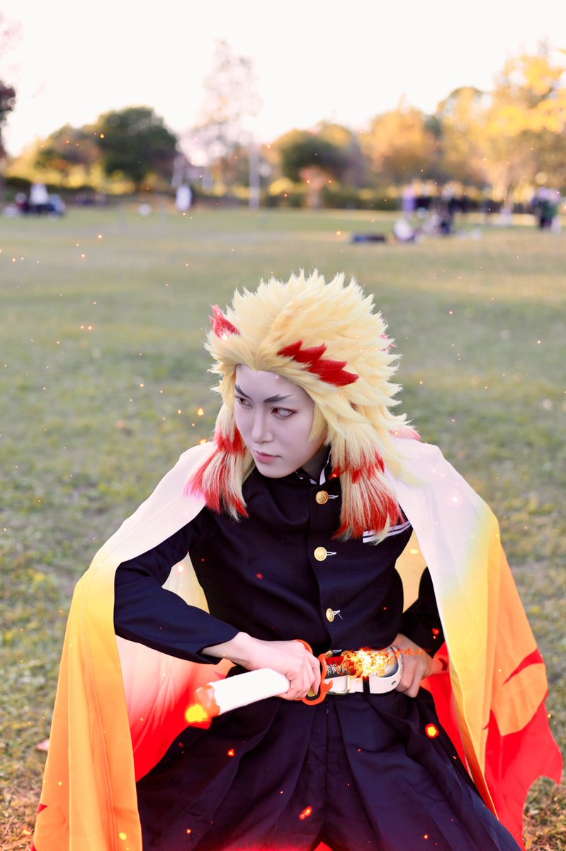 [Cosplay]鬼滅の刃 煉獄 杏寿郎 ------------------------- Photo: @ambitious530 wig: @kushi_fuwat #アコスタ寝屋川公園