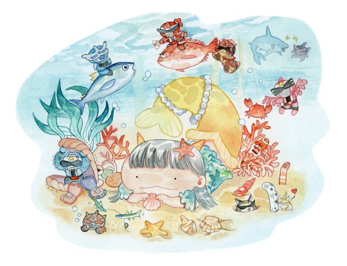 68 307 暑中お見舞い申し上げます🐟 まだまだこれから鬼暑い日が続くので、全人類日傘さしてこの夏を生き延びてください そんでまたはに〜の新作をみてください #暴太郎戦隊ドンブラザーズ #透明水彩 23/08/01 21:11