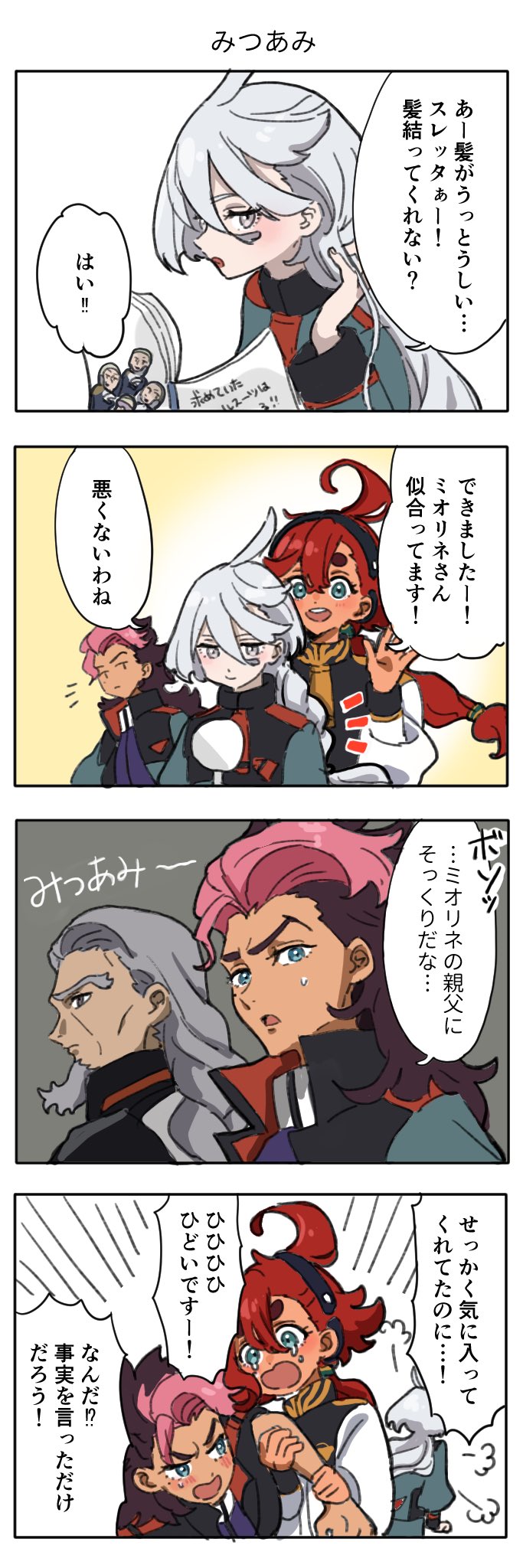 1599 8913 11話でボブの髪型がグエルヘアーに戻っていた件について妄想した漫画です。 #水星の魔女 22/12/27 07:02