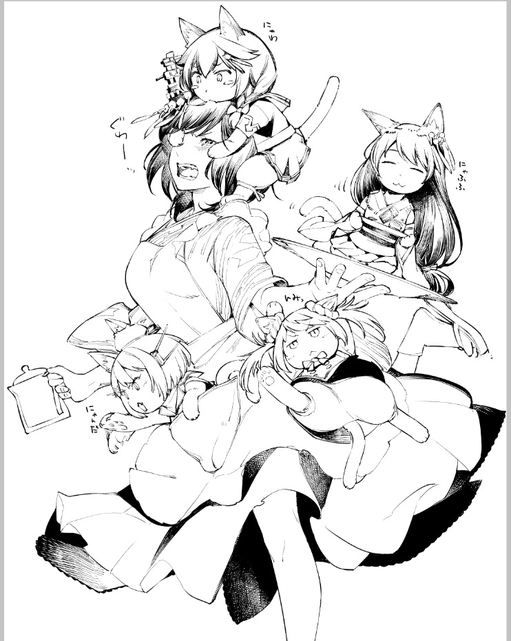 コピ本は、あんま描いた事のない艦娘を布面積少な目ので描いてたらなんだか寒そうだったのでもこもこ動物を置いたらマシになるかしらどうかしら?みたいな白黒絵の本でした。数がまとまったらコピ本とか折本とか考えてます。絵はローマさんとたぬき