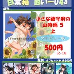 51 87 百葉箱のC101お品書きです。新刊の『小さな鎮守府の山時雨5上』は山時雨5のプレビュー版です。イベント会場のみの頒布となりますのでよろしくよろしく。 22/12/26 20:36