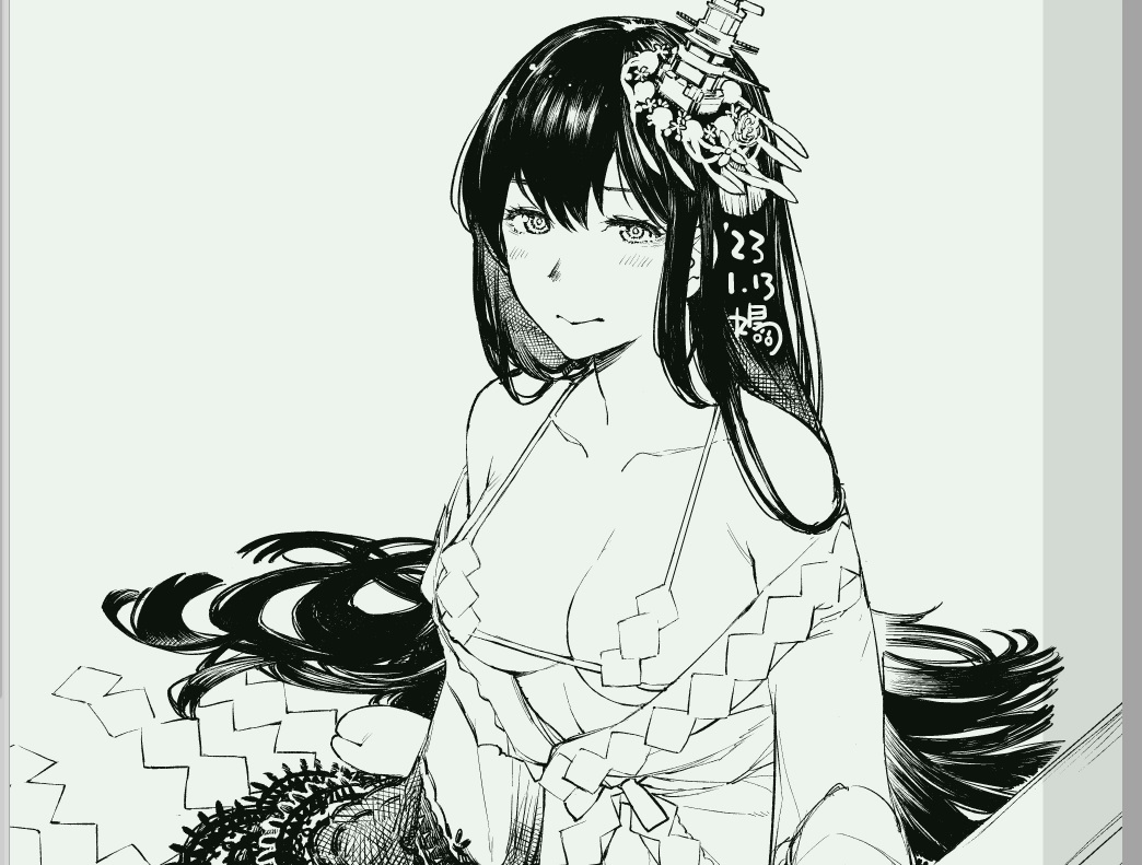 昨日の三越扶桑姉さま(妄念)にペン入れとかトーン張りとかしてみた。