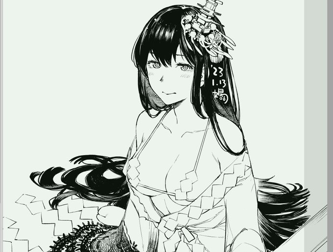 601 2114 昨日の三越扶桑姉さま(妄念)にペン入れとかトーン張りとかしてみた。 22/02/20 17:58