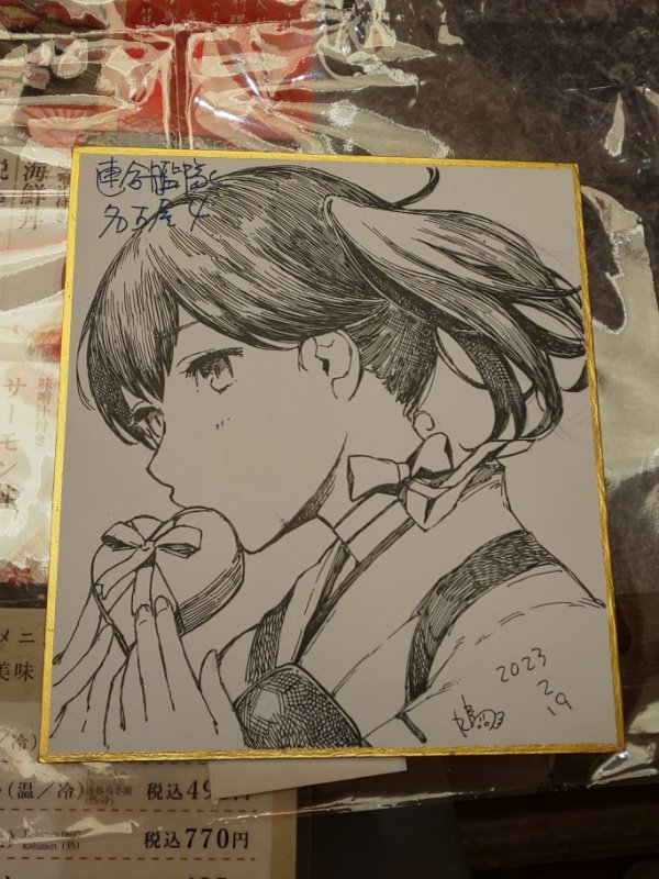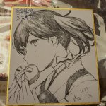 20 88 夜なべして描いたが、朝方に消しゴムかけでズッ、てなったのでディスプレイ兼売り子様のバイト代になったチビ色紙。 23/02/19 16:40