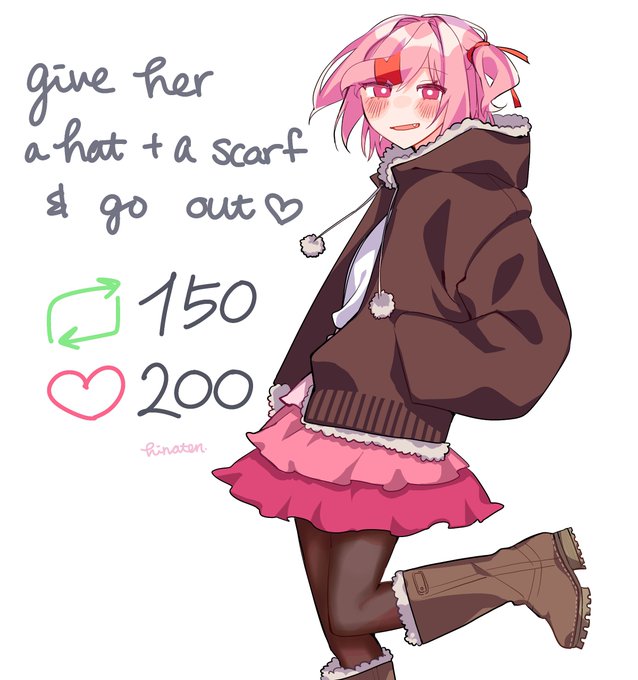 160 494 She's all dressed up, ready to go out with you💗 That's it for the Natsuki warm outfit challenge thingy! Thank you all for participating~~ #ddlc twitter.com/hatocko/status… 22/12/12 09:02