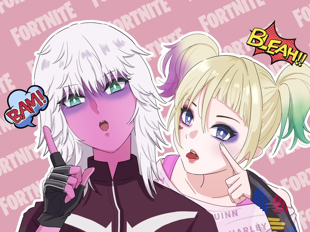 フォトナ美術部 テーマ「推しデュオ」ハーロウとハーレイクインです。私が好きなスキンを組み合わせてみました💕いつもギリギリになってしまうのはなぜなんだろう💦 #フォートナイト #フォトナ美術部 #フォートナイトイラスト