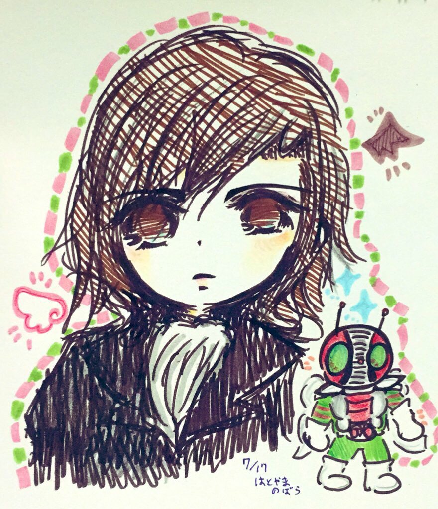 #特撮版深夜の真剣お絵描き60分一本勝負R ①仮面ライダー1号/本郷猛 嵐をよぶ 男の素顔は シリアスな彼も好きなんですが 実はゴースト劇場版の年季が入った 本郷さんが好きだったりします おやっさんの孫娘ちゃんが可愛いからって あんなにデレデレしておって……