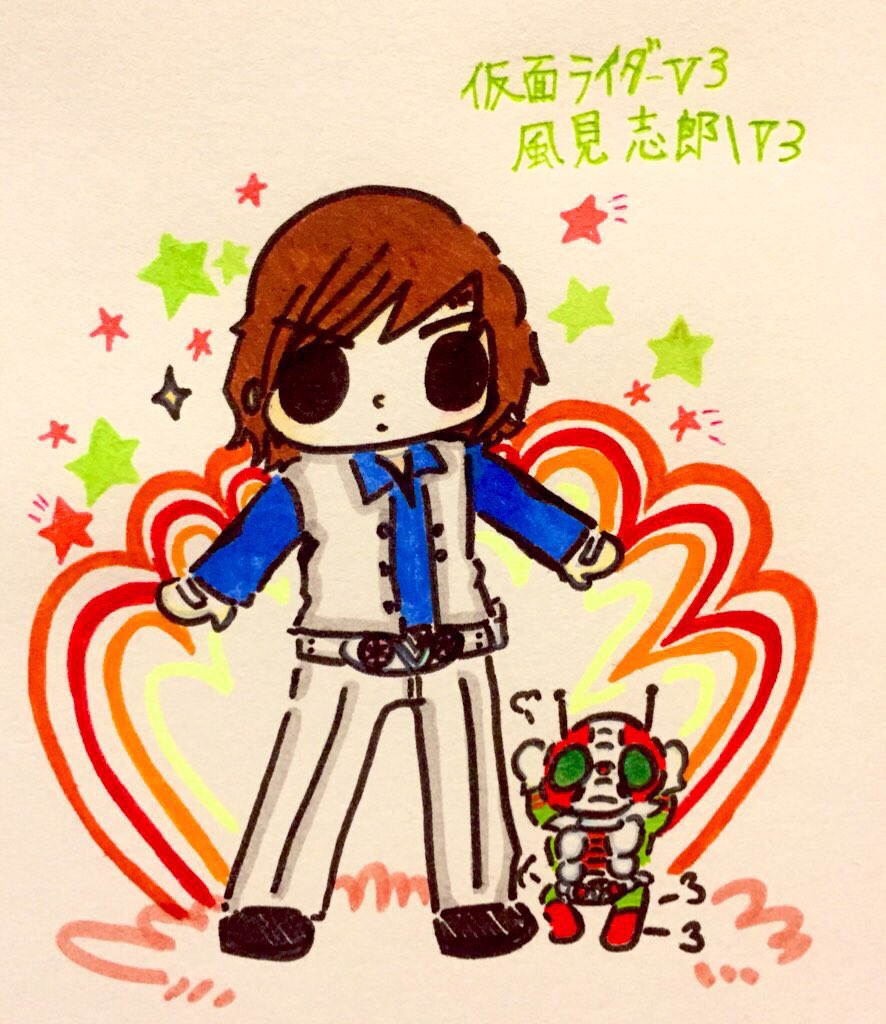 #特撮版深夜の真剣お絵描き60分一本勝負R ⑥天使or悪魔 クールフェイスに 熱い感情を マシンボディに 未だ絶えぬ愛を V3終盤の黒ジャケット風見さんが ガチで尊みのアガペーで凄い好きです