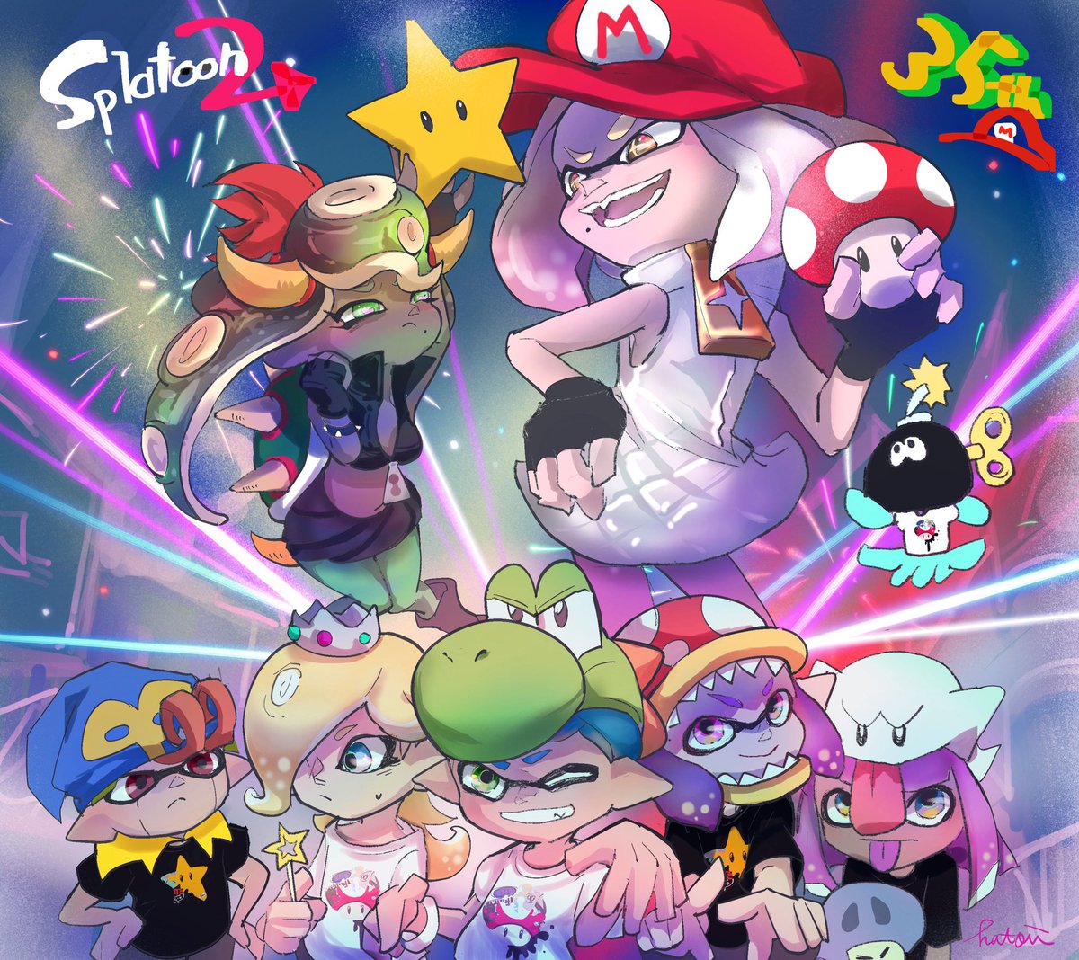 絵やゲームを通じて沢山の人と繋がれて新たな扉が開いた年でした😌 イカの数だけプレイヤーがおる、という感じでこの絵全部プレイヤーさんがモデルだよー!!描かせてくれてありがとう! #2020年自分が選ぶ今年の4枚