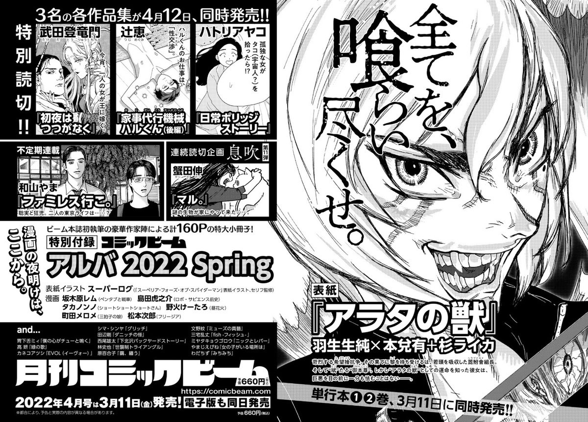 3月11日発売の月刊コミックビーム2022年4月号に 日常ポリッジストーリー掲載されます!日常のちょっとした寂しさのお話しを描きました! よろしくお願い致します! KADOKAWA→ kadokawa.co.jp/product/322102… @kadokawa_prより Amazon→amazon.co.jp/dp/B09SZ7F6LR/…