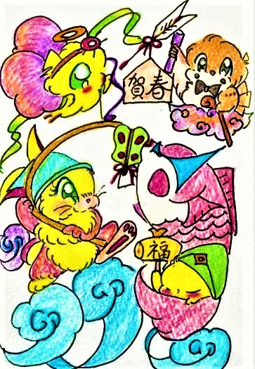#今日は何の日 #ウサギ #うさぎ #こどもの日イラスト #イラスト #illustration #兜 大谷翔平さんの兜に憧れた「ウサギ達」を狙う「ひよこエンジェル」と、柏餅を食べようとする「鯉のぼり」と「眠りのヒヨコ」ちゃん🐤 こどもの日おめでとうございます🐇