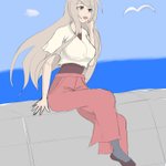 夏イラスト 白ワンピース姿で海に佇むウチの姉貴 #イラスト #オリキャラ