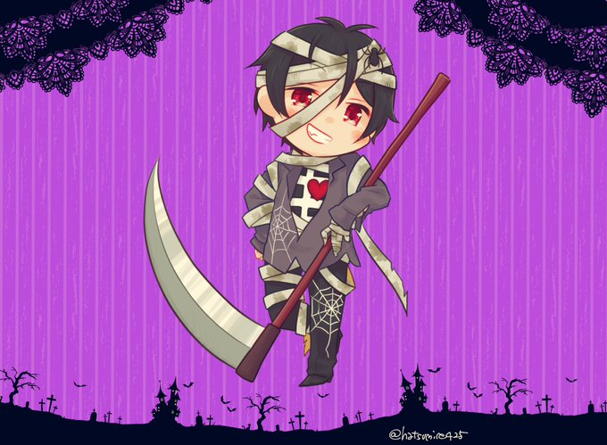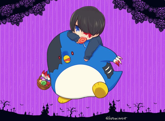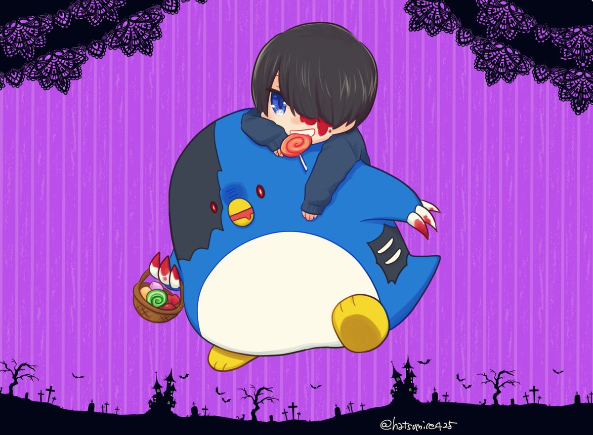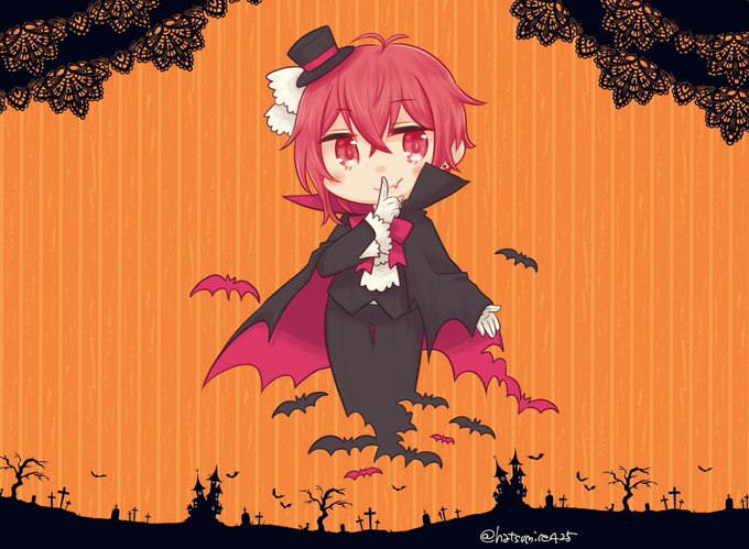 10月なのでとびユニのみんなをハロウィン仕様で描きたい!一人目はさっくん🦇 #紅月絵