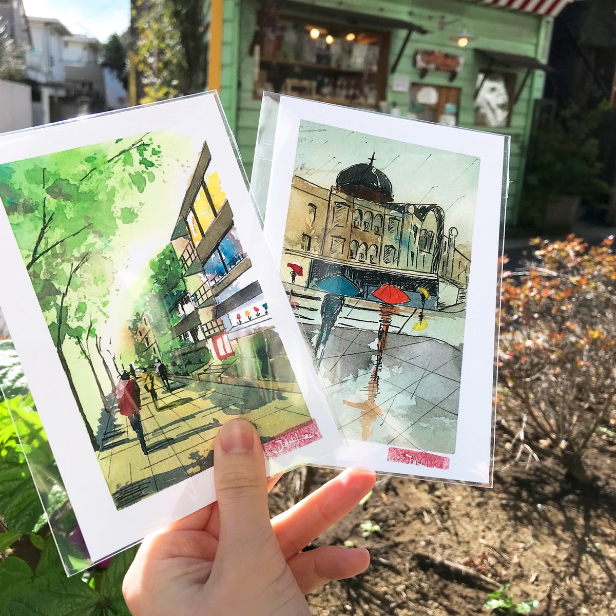【*木漏れ日を切り取る*】 とっても気持ちの良いお天気の今日は初出店JOHHOさん( @JOHHO710 )のあたたかい木漏れ日を感じる水彩画ポストカードをご紹介✨ 原画ならではの風合いや手触りを感じられる原画ポストカードは世界に一枚だけです(◍>◡<◍)✨ #イラスト好きさんと繋がりたい #水彩画