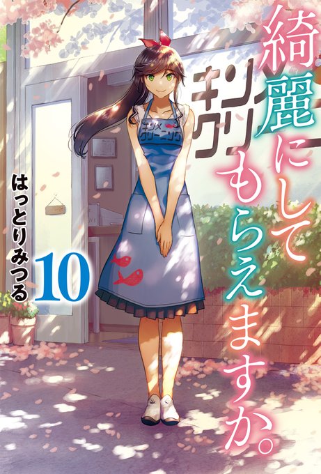「綺麗にしてもらえますか。」10巻のカバー絵公開。 最終巻はシンプルにお店の前でお客様を見送る金目さんの絵です。 8/25発売、よろしくお願いします!