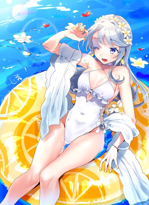 サキの水着もめっちゃすきなので描いたよん~~~今日は!!!!ヘイロー忘れてないから!!!!