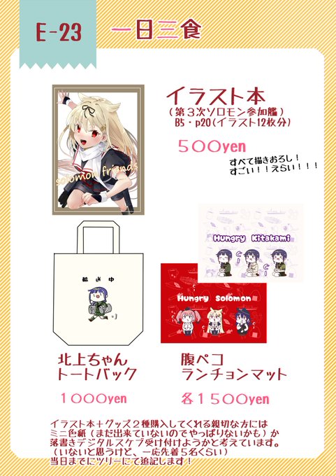 20 21 【お品書き】 2/19 艦これオンリー、艦隊名古屋に参加します! 当日は宜しくお願いします! E-23にて、友達と一緒にお待ちしておりますゆえ😘 #艦隊名古屋 23/02/18 01:19