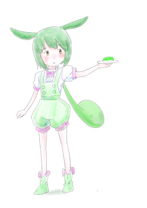 #東北ずん子深夜の真剣お絵描き60分一本勝負 に投稿しようとして 途中で寝落ちした 「ビスケットの味を覚えて ずんだ餅を食べなくなって 知性が衰えて 人型を保てなくなった #ずんだもん」 を描こうとしたところ