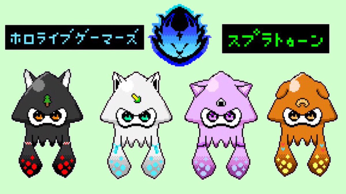 ホロライブゲーマーズのイカ状態 #絵フブキ #みおーん絵 #絵かゆ #できたてころね #ホロライブゲーマーズ